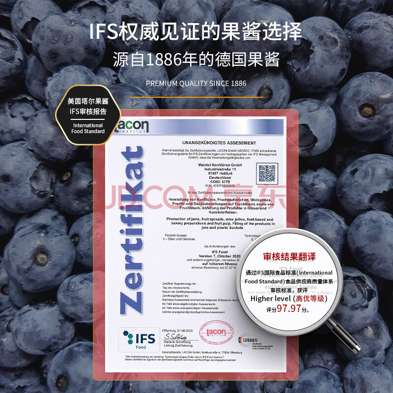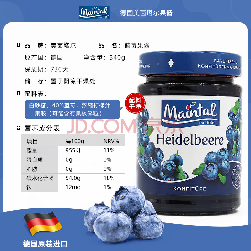 商品相册:美茵塔尔德国进口无添加蓝莓酱340g早餐伴侣0脂肪第