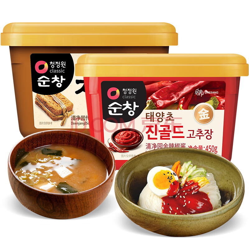 商品相册:清净园韩国进口 部队火锅石锅拌饭炒年糕酱金辣椒酱450g+生大酱500g第