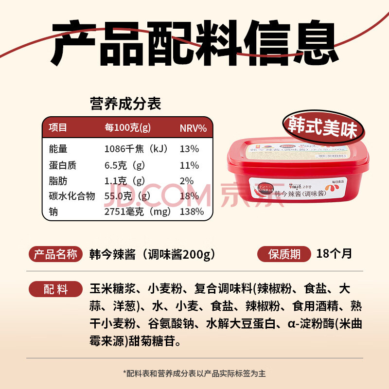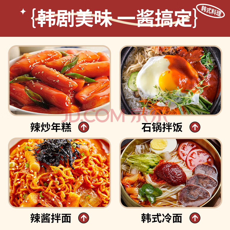 商品相册:韩今韩式辣酱 韩国进口部队火锅拌饭辣牛肉粉丝汤酱 辣椒酱烤肉酱200g第