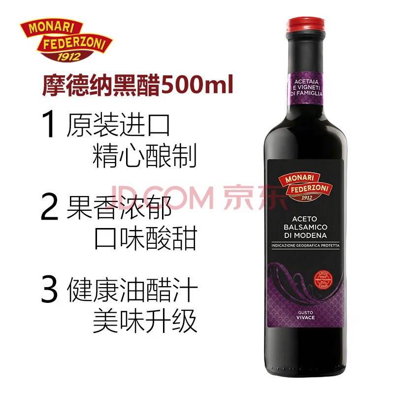 商品相册:莫奈瑞摩德纳黑醋500ml【意大利进口IGP】酿造食醋香醋沙拉油醋汁凉拌第