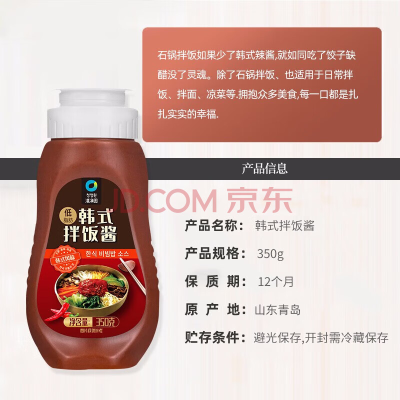 商品相册:清净园云山半联名款 韩式低脂辣酱石锅拌饭酱350g 辣炒年糕部队火锅第