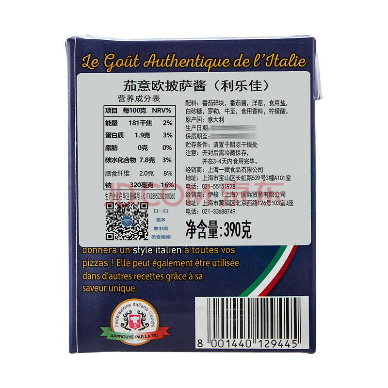 商品相册:茄意欧(CIRIO)披萨酱 番茄酱调味品意大利原装进口利乐佳包装390g第