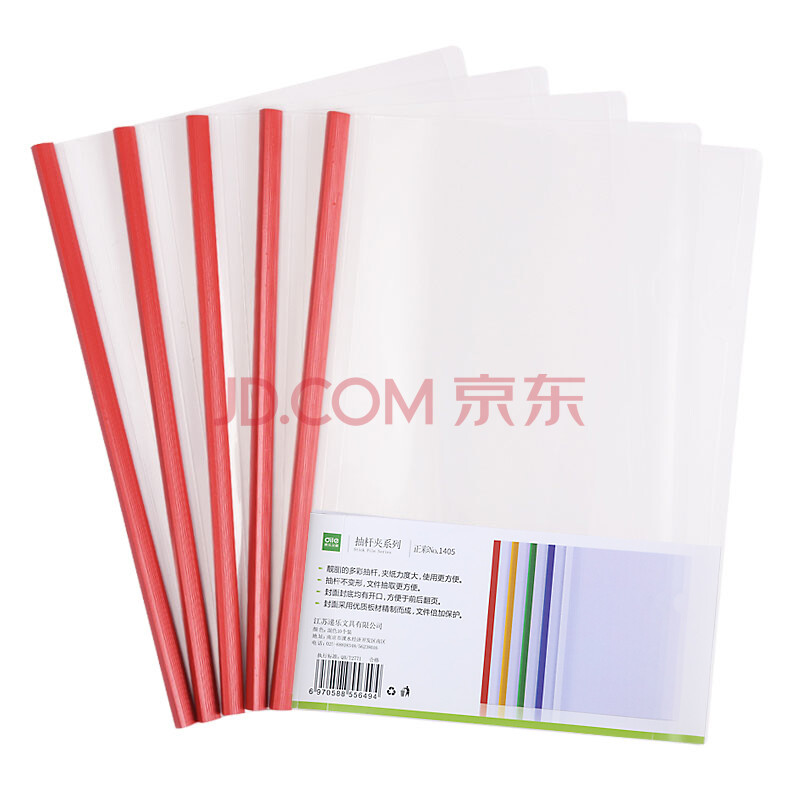 商品相册:递乐 A4透明抽杆夹/文件夹/拉杆夹/报告夹 办公用品文具10个装 1405红色第