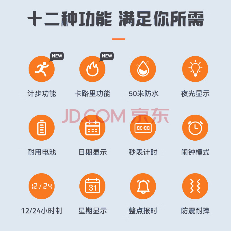 商品相册:时刻美(skmei)电子表学生青少年初高中生运动手表防水闹钟计步计时卡路里1445第
