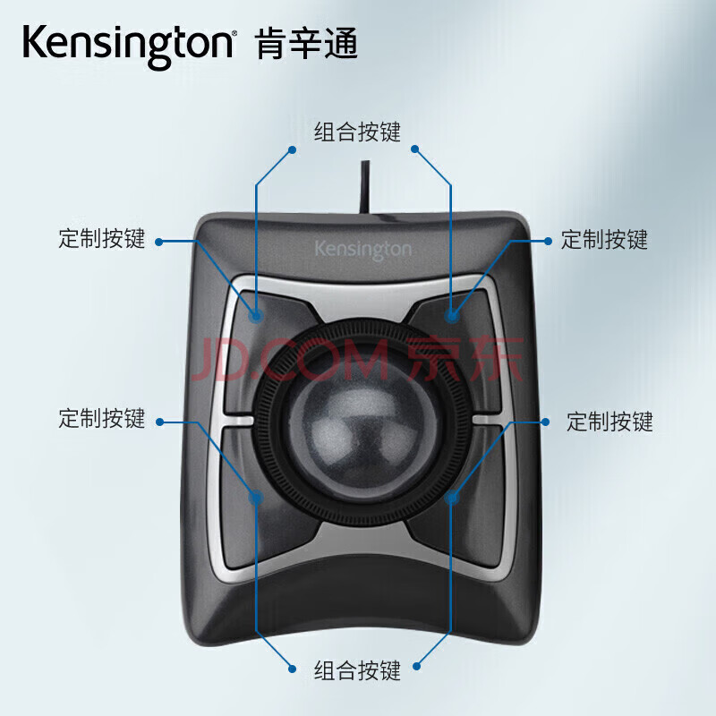 商品相册:肯辛通(Kensington) 轨迹球 人体工学鼠标 家用办公设计制图 适用于华硕联想神舟惠普苹果 有线银灰方形轨迹球K64325第