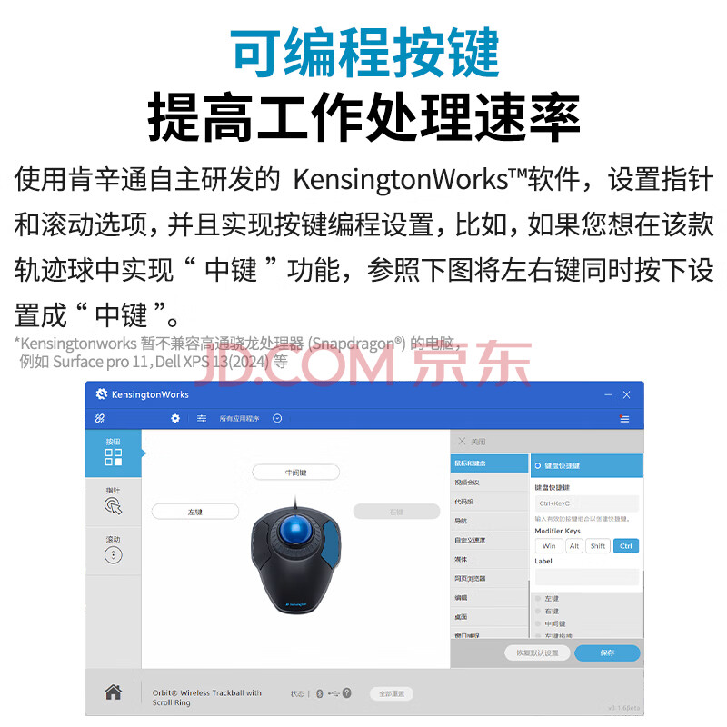 商品相册:肯辛通(Kensington) 轨迹球 人体工学鼠标 家用办公便携PS制图 带控制环适用于华硕联想惠普苹果 K72500白色第