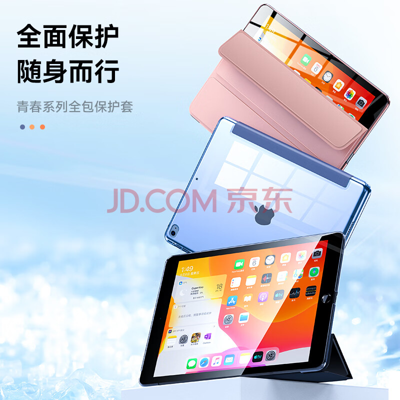 商品相册:毕亚兹适用iPad Air2保护套 苹果平板电脑6代9.7英寸保护后外壳轻薄防摔智能休眠三折男女款PB13-薰衣草第
