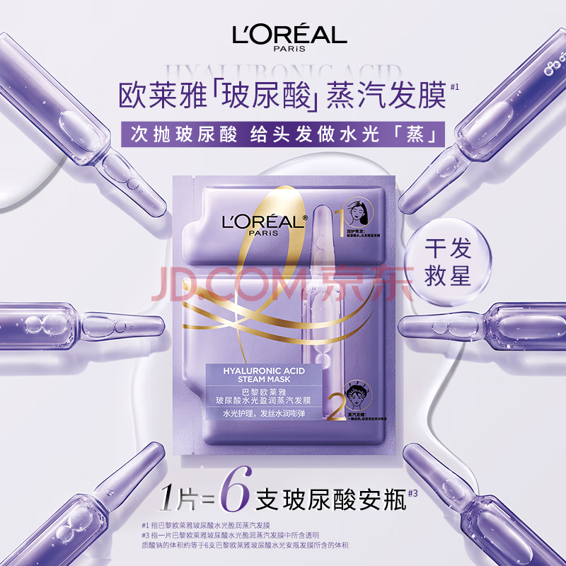 商品相册:欧莱雅玻尿酸水光盈润蒸汽发膜20ml+40g(加热干枯补水改善毛躁女)第