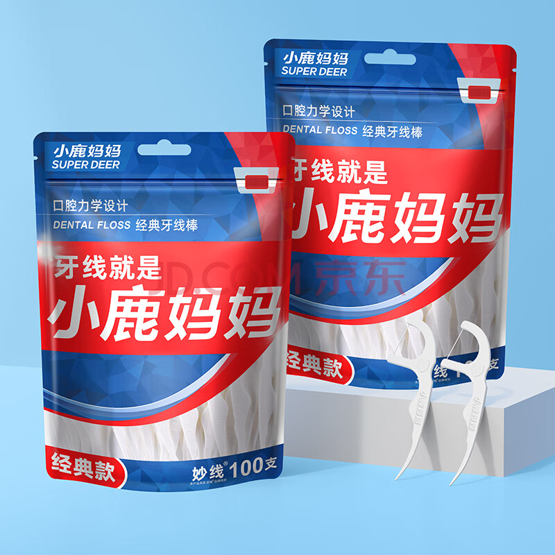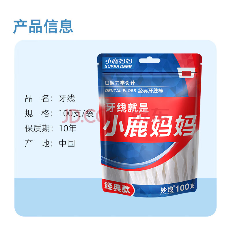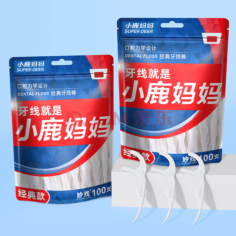 商品相册:小鹿妈妈经典牙线棒成人牙签100支/袋*3袋共300支 随身盒 方便携带第