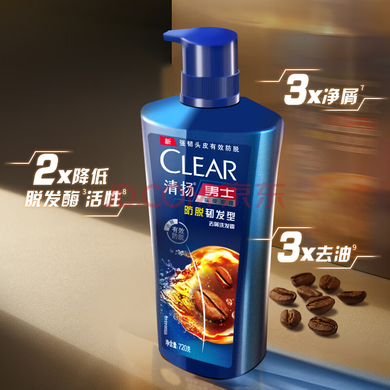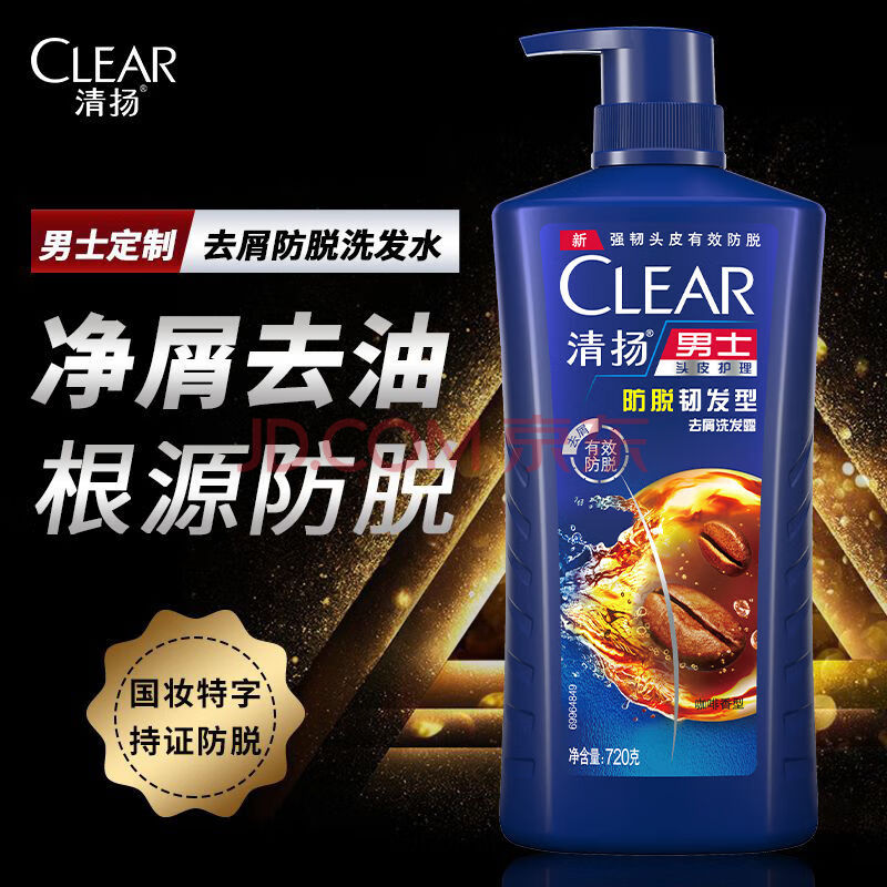 商品相册:清扬男士去屑洗发水 防脱韧发720gx2+试用装100gx2防脱特证控油洗头膏第