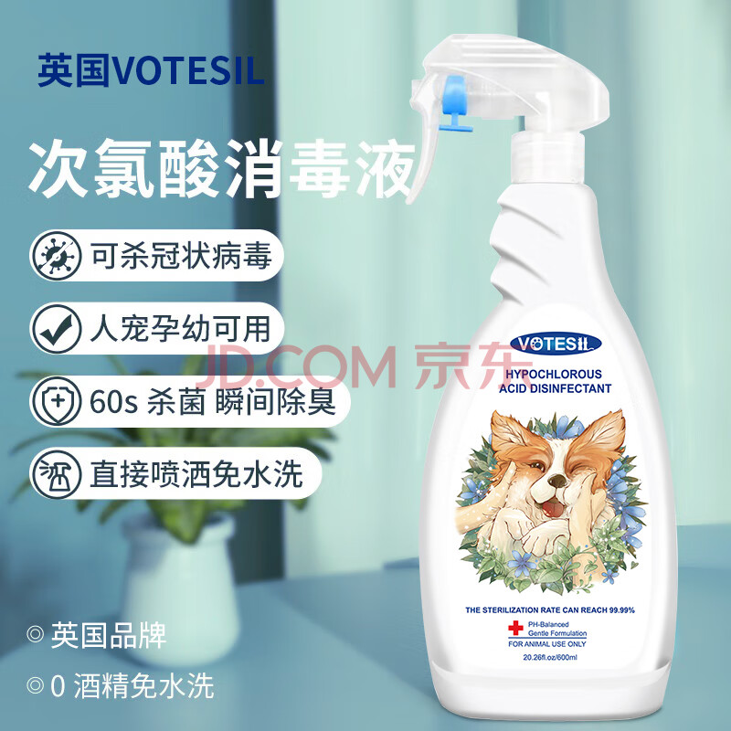商品相册:votesil英国次氯酸消毒液600ml*3瓶装大容量 猫狗抑菌除味 多用途消毒液第