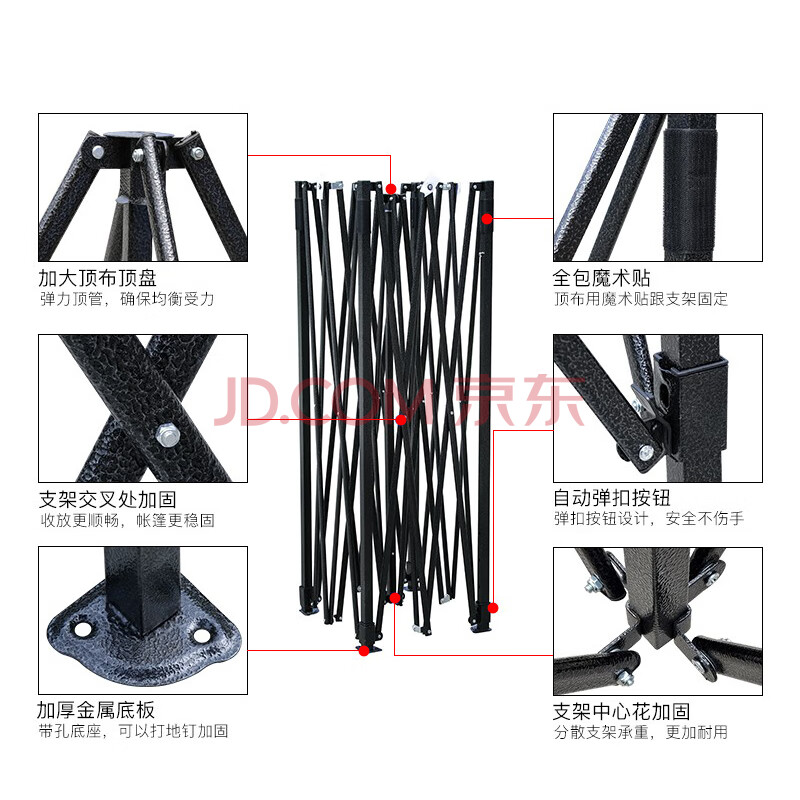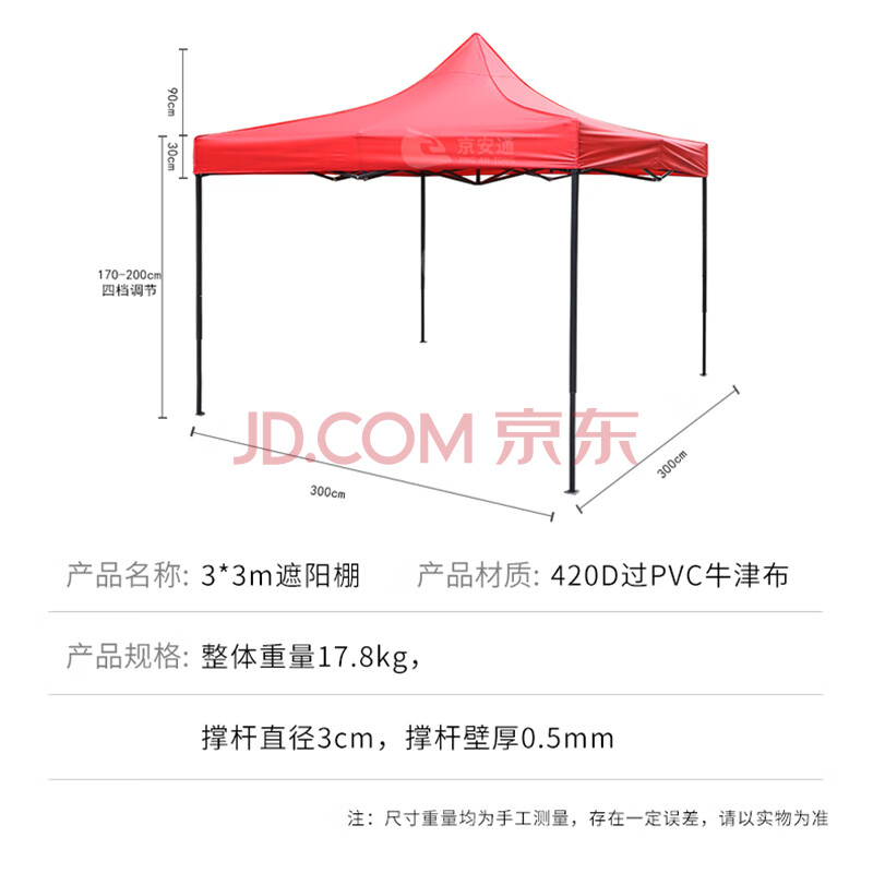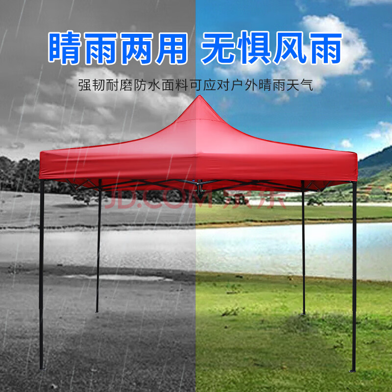 商品相册:京安通 雨棚遮阳棚 户外加厚遮阳折叠式四脚太阳伞停车棚 3*3m红色第