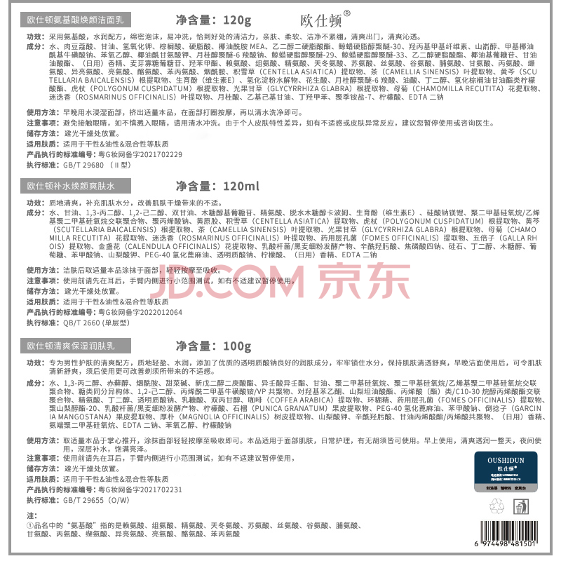 商品相册:欧仕顿男士护肤品套装氨基酸控油补水保湿洁面乳液水男生礼盒礼物第