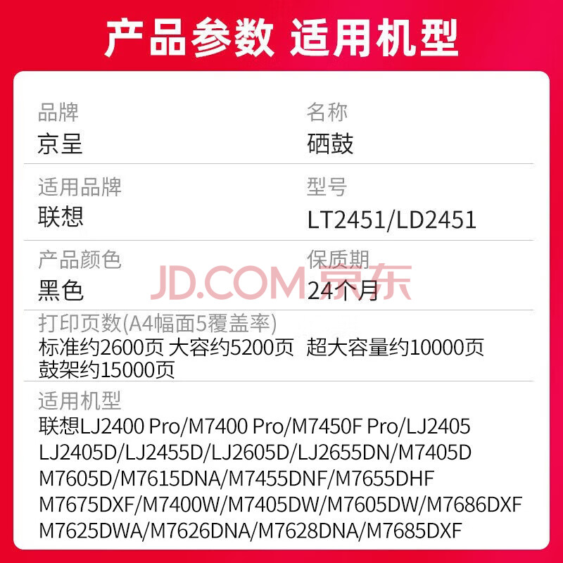 商品相册:京呈LD2451硒鼓架组件 适用联想LJ2405D LJ2455D LJ2605D LJ2655DN M7605D M7615DNA M7455DNF成像鼓第