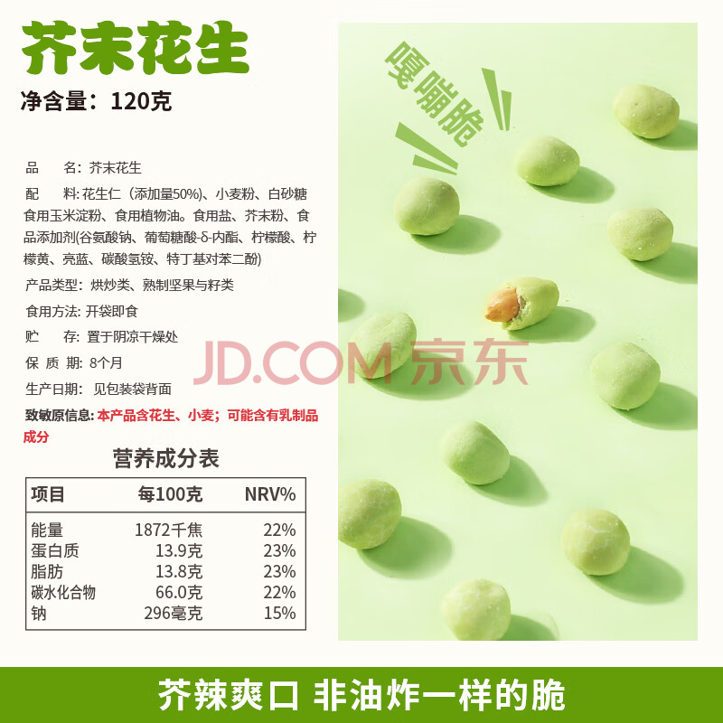 商品相册:捷氏芥末鱼皮花生罐装120g花生特色风味香脆怪味花生豆休闲坚果第