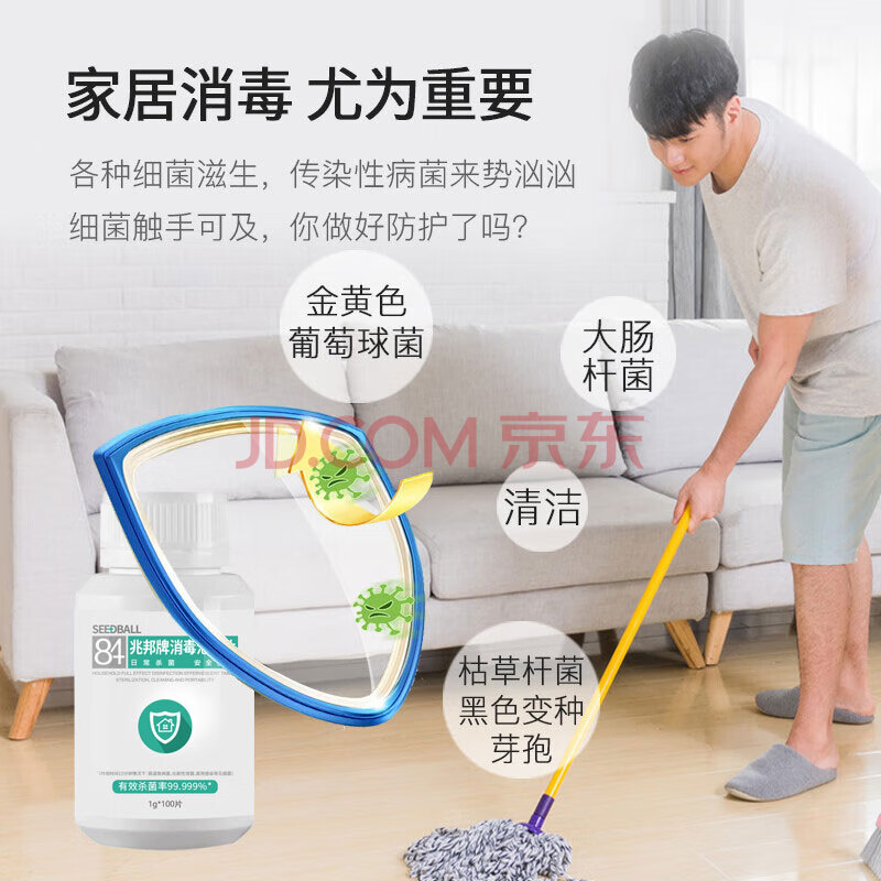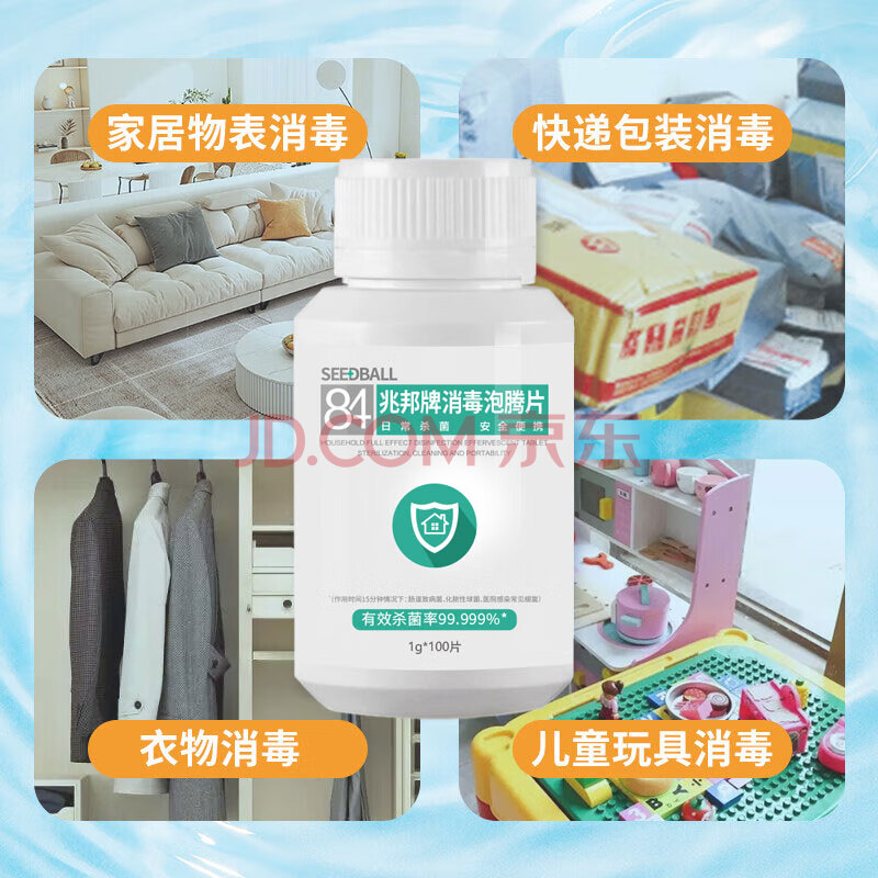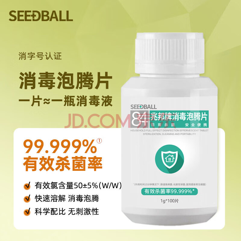 商品相册:SEEDBALL含氯84消毒片泡腾片瓜果蔬菜洗衣机清洁消毒液祛除茶渍1g*100片 第