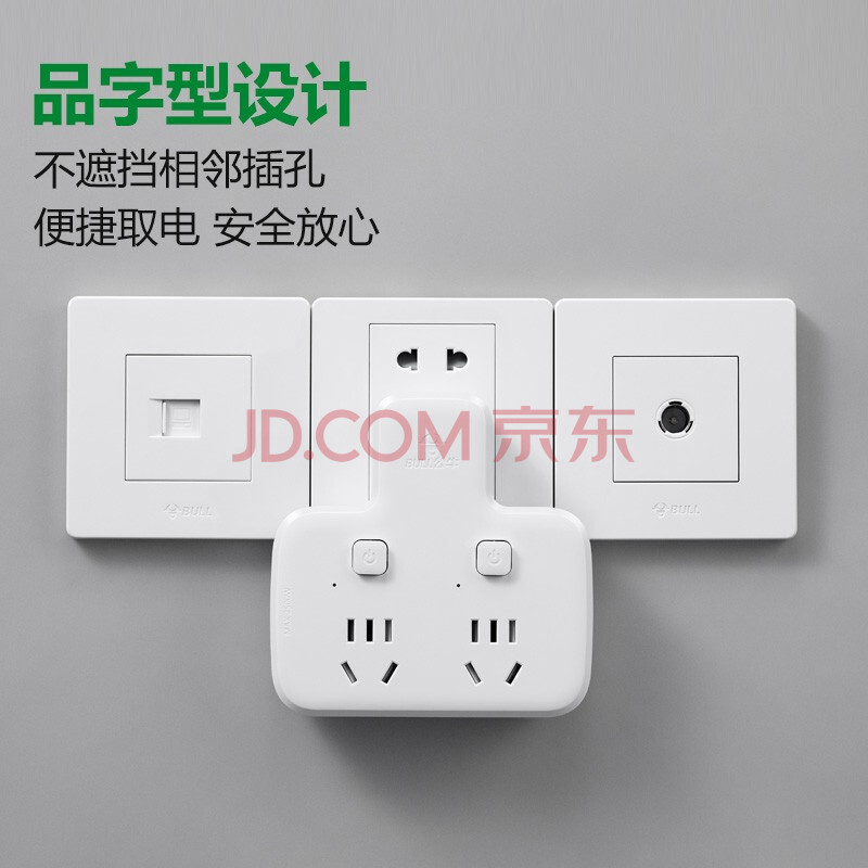 商品相册:公牛(BULL)插座扩展器一转二/一转多插座/转换插头/转换器/插排 适用卧室、厨房 品字形 2位分控 GN-96023第