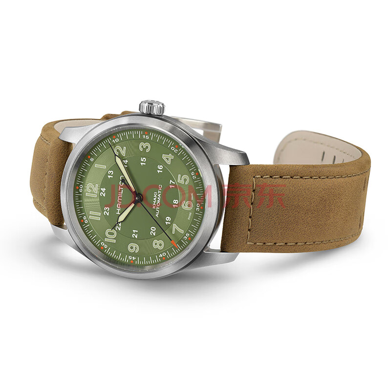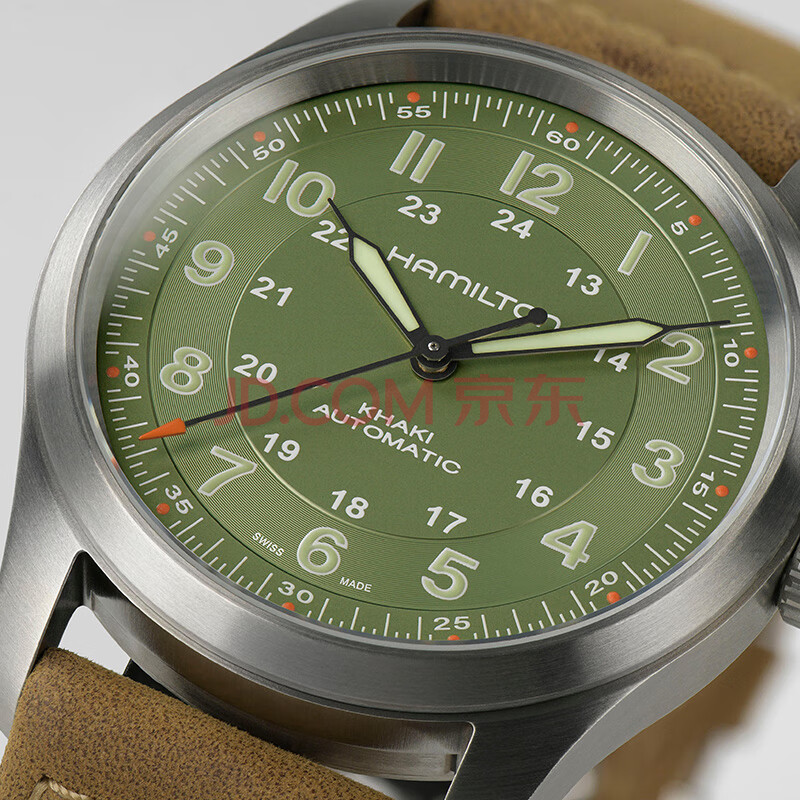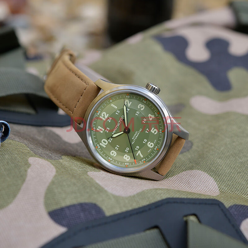 商品相册:汉米尔顿(Hamilton)汉密尔顿卡其野战钛金属42绿盘皮带瑞士手表军表机械表男款礼物第