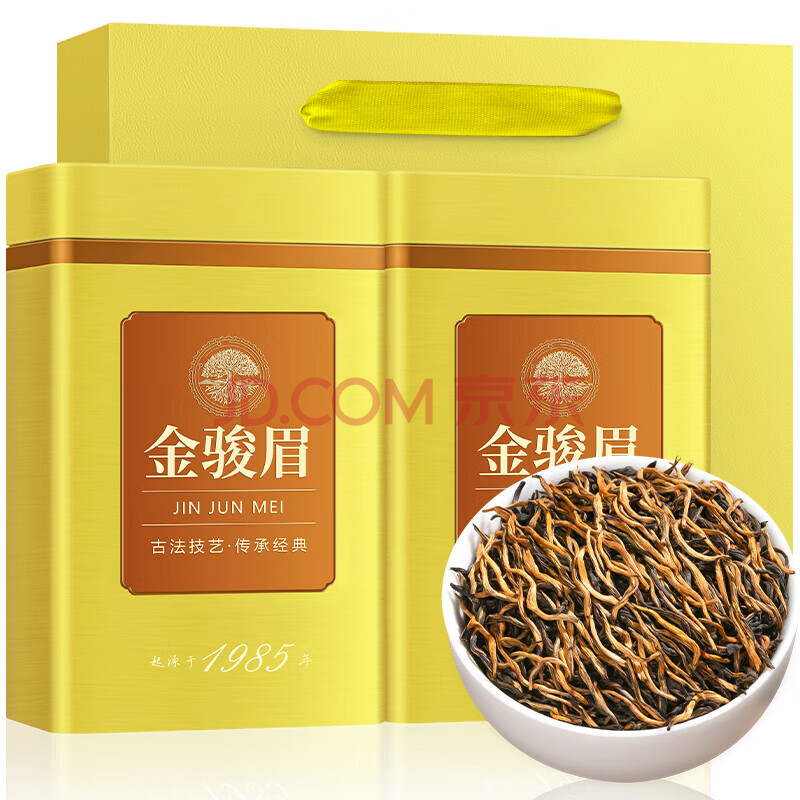 商品相册:音朗 茶叶 金骏眉红茶新茶特级蜜香型黄芽耐泡茶叶礼盒送礼2罐共500g第