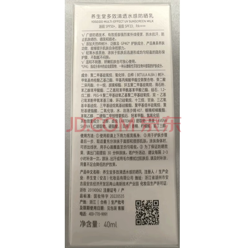 商品相册:养生堂多效清透水感防晒乳40ml 面部物理化学防晒清爽 节日礼物送男女生第