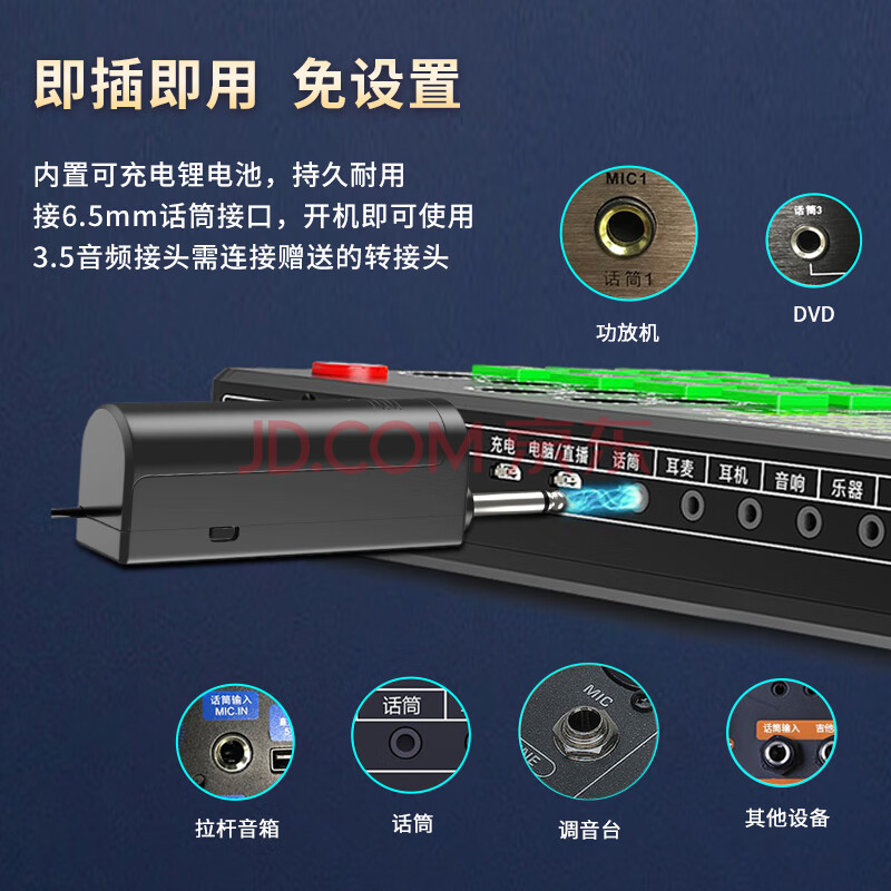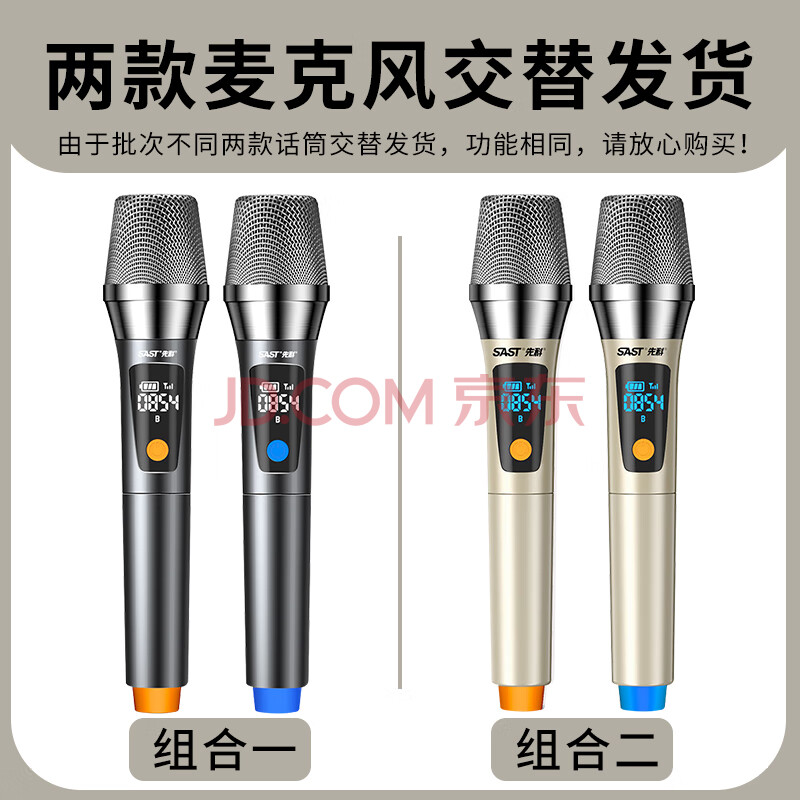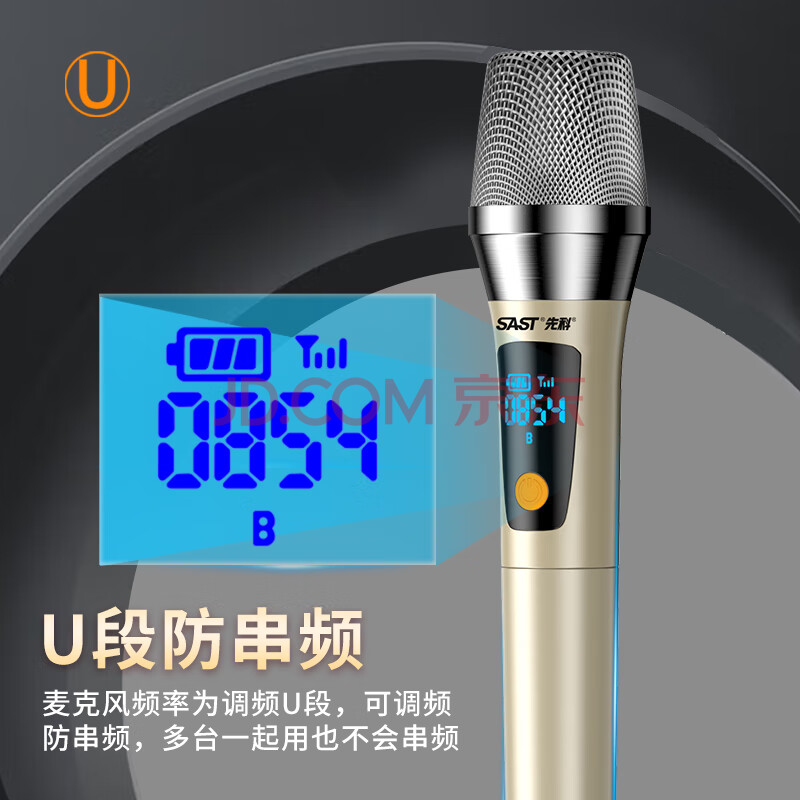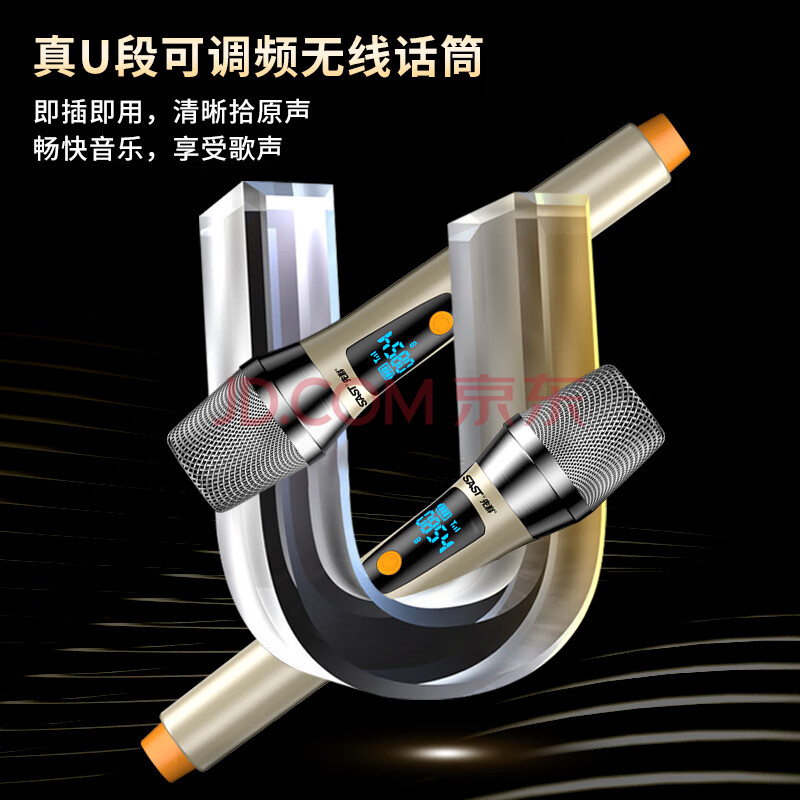 商品相册:先科(SAST) OK-123充电无线麦克风U段家庭KTV唱歌舞台主持演讲K歌会议音箱音响功放调频万能一拖二金属话筒第