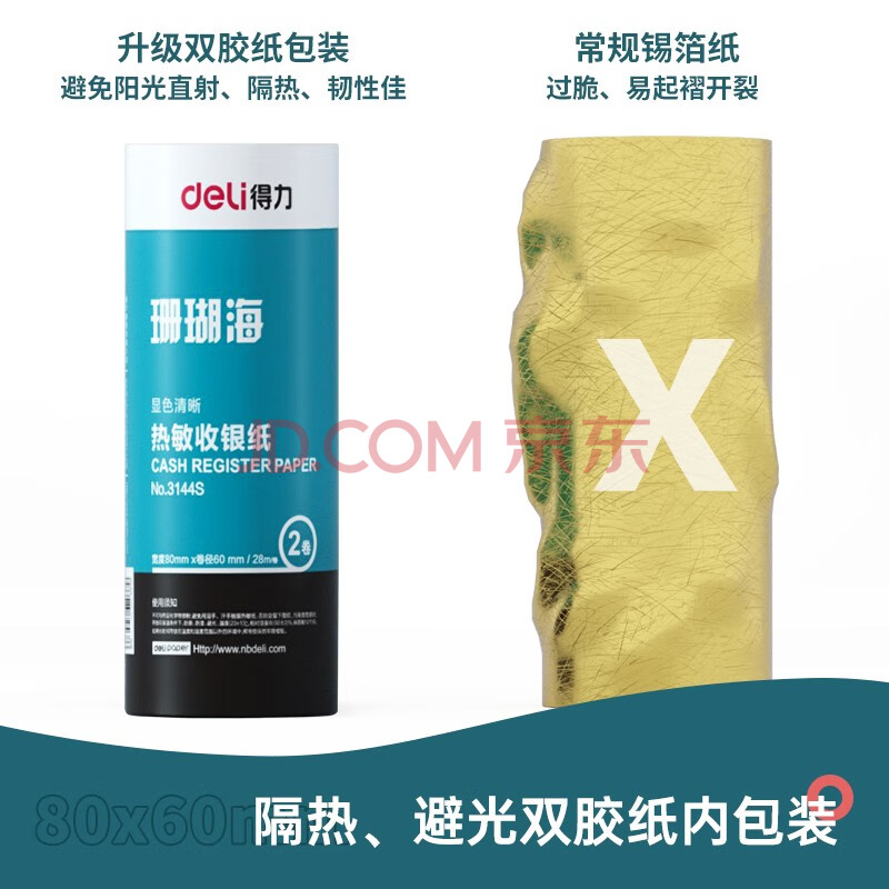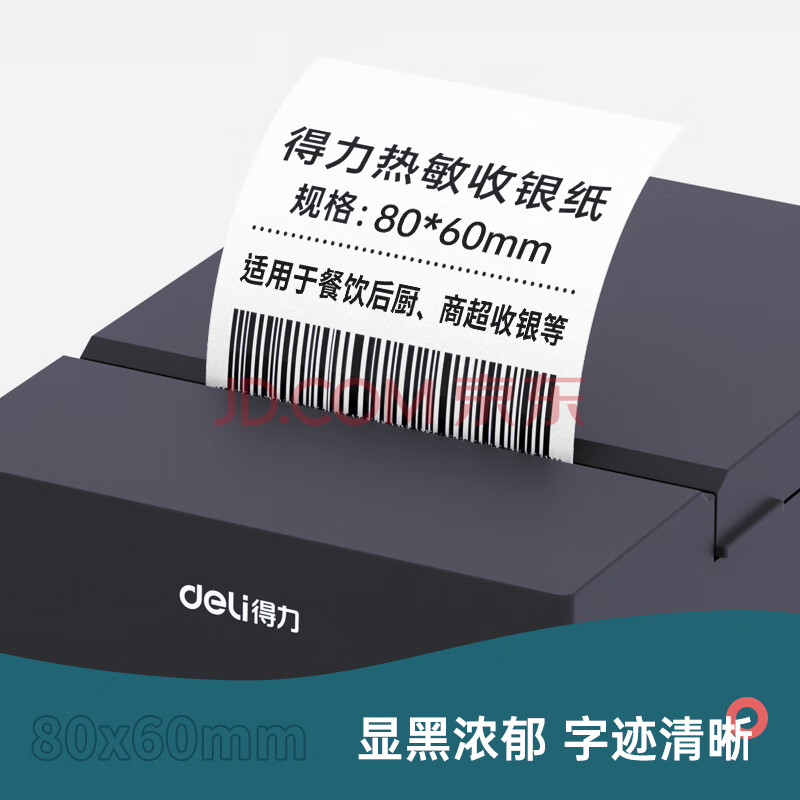 商品相册:得力(deli)80*60型28米*50卷 珊瑚海热敏收银纸 京东外卖餐饮后厨小票纸 3144【适配80mm机器 801P等】第1张/共6