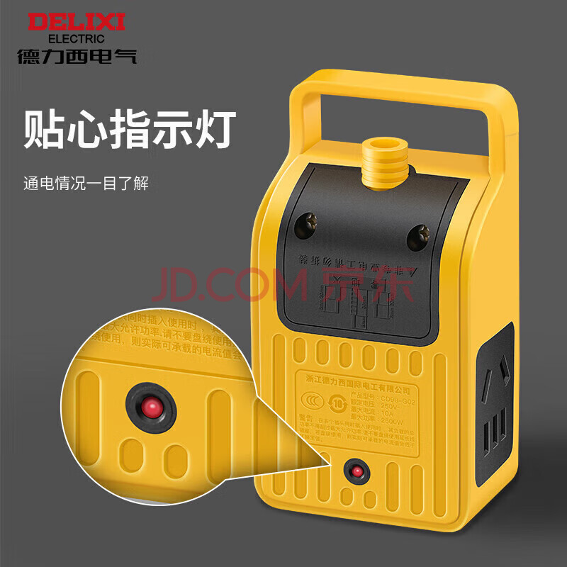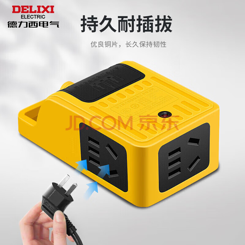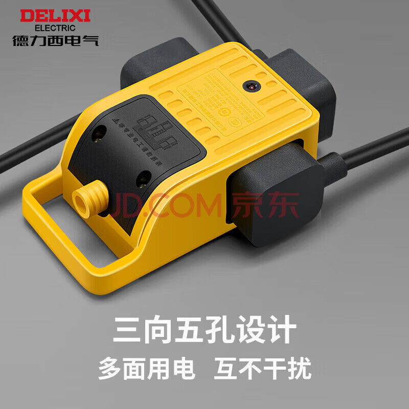 商品相册:德力西(DELIXI)工程地拖插座耐摔接线板排插户外作业插线板 PVC包胶 3位5孔带挂钩自接线无开关第