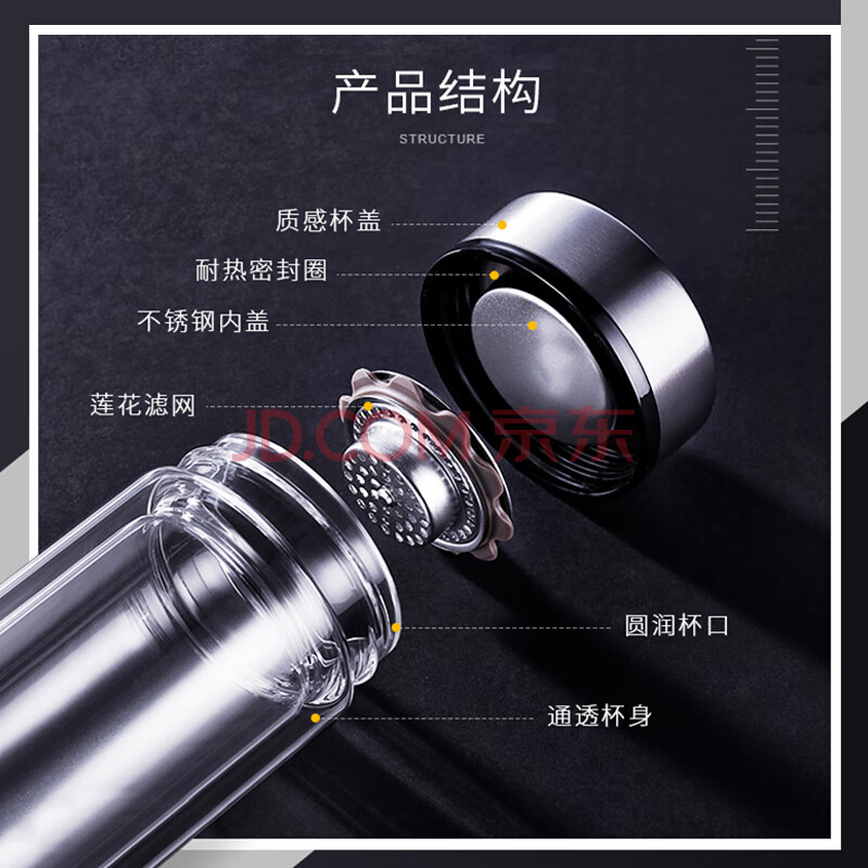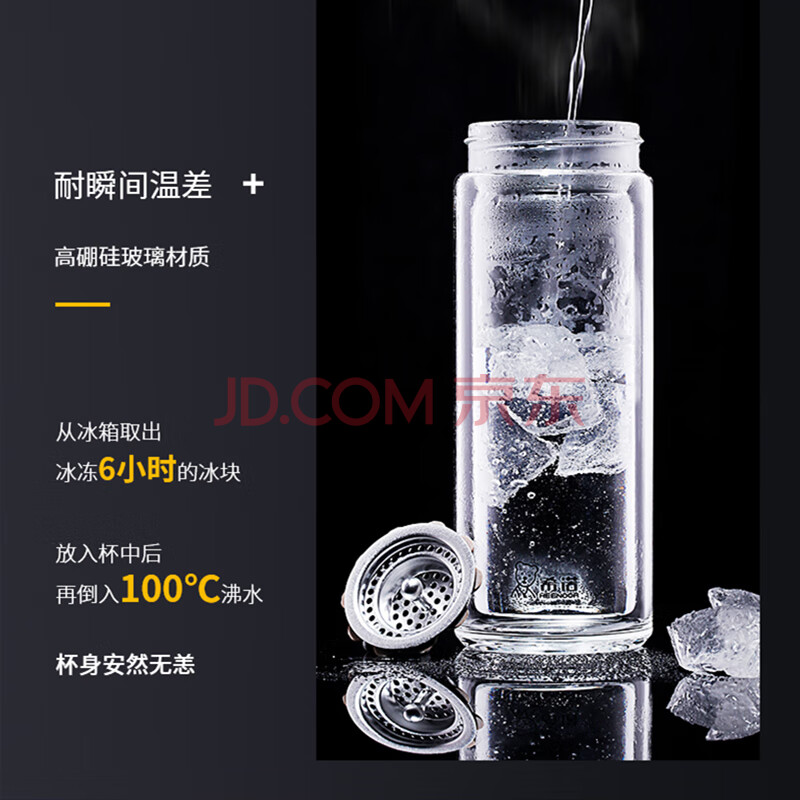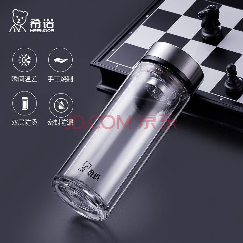 商品相册:希诺水杯高档商务玻璃杯带盖便携双层玻璃泡茶杯380MLXN-7073第
