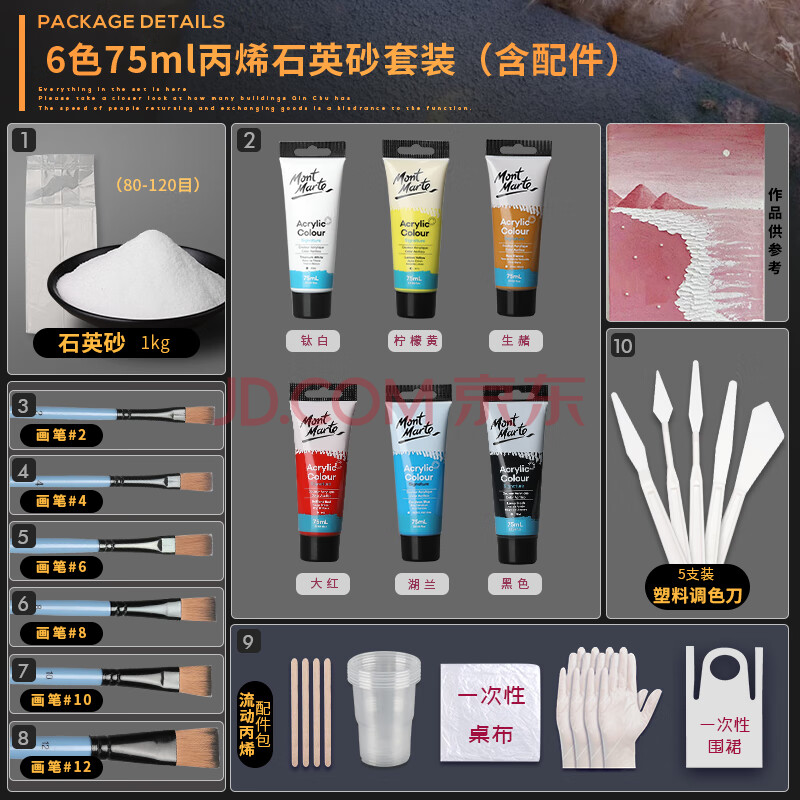 商品相册:蒙玛特石英砂肌理画丙烯颜料6色材料手工diy工具套装细沙全套SXBXJLH6s75mlTZ2速写马克笔绘画美育工具第