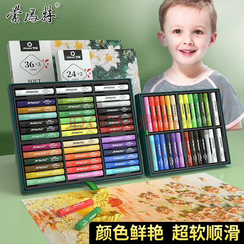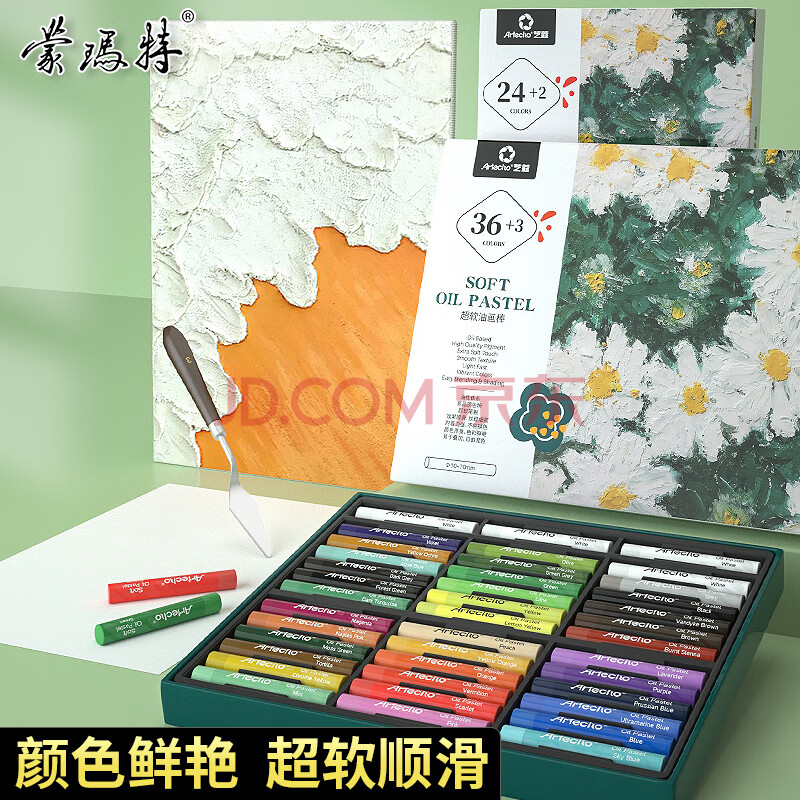 商品相册:蒙玛特艺蔻系列 36色超软油画棒 重彩油画棒软性油性色粉棒蜡笔套装 刮刀画不脏手配工具SX-ATOD-OP3602-5JT 速写 马克笔绘画第