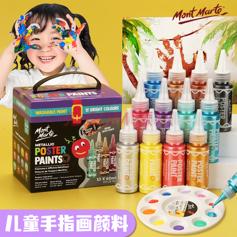 商品相册:蒙玛特(MontMarte)手指画颜料套装可水洗12色儿童画画颜料60ml水粉颜料涂鸦手彩绘画MPST6005C美育工具第