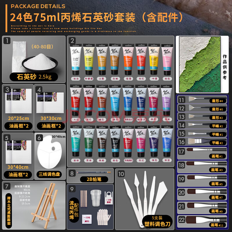商品相册:蒙玛特石英砂肌理画丙烯颜料24色材料手工diy工具套装细沙肌理画刮刀画材料包全套V美育工具第