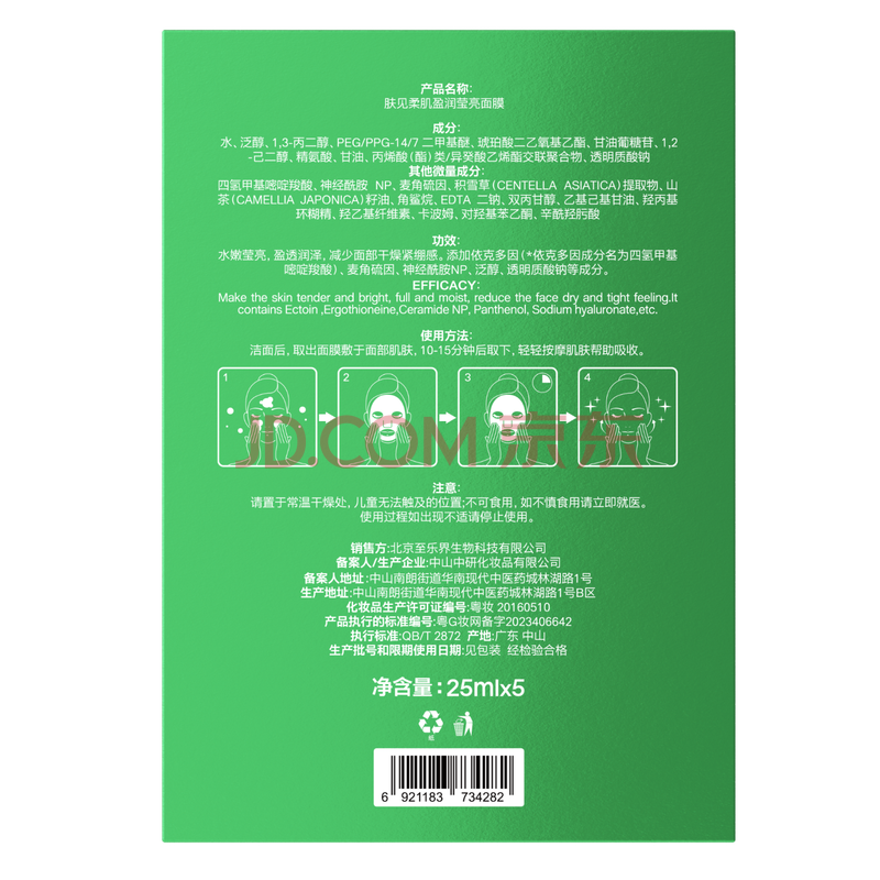 商品相册:肤见小绿盾复活草B5面膜 男女士补水保湿舒缓25ml*5片/盒第