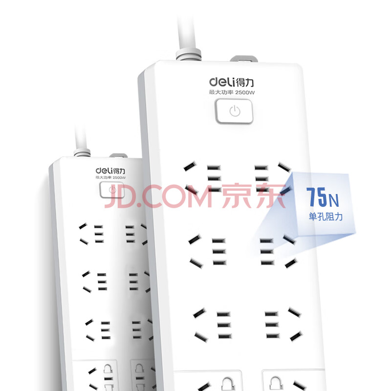 商品相册:得力(deli)国标安全插座/插排/插线板/接线板/排插/拖线板 总控开关 儿童保护门 10组合孔2米 18275(02)第