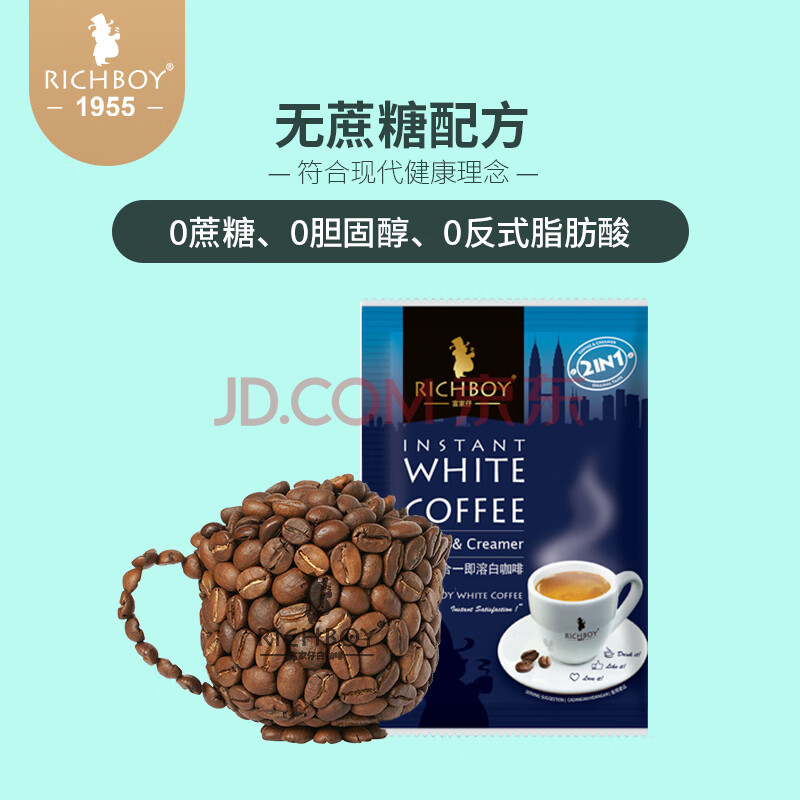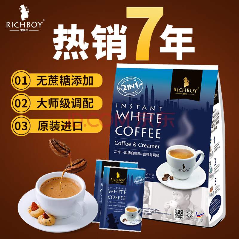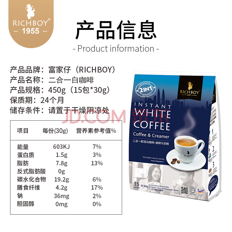 商品相册:富家仔 二合一无蔗糖特浓白咖啡速溶450g 原装进口大师级调配微苦咖啡粉第