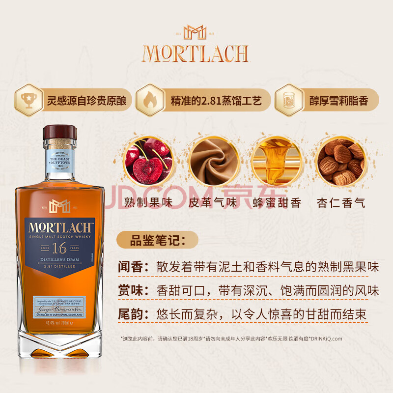 商品相册:慕赫(Mortlach) 16年雪莉 单一麦芽威士忌 洋酒 750ml 斯佩塞产区第1张/共4