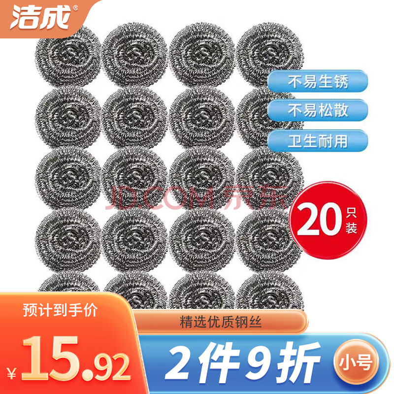 商品相册:洁成不锈钢大号钢丝球20克重20只/包 厨房去垢去油污洗碗刷锅清洁球第