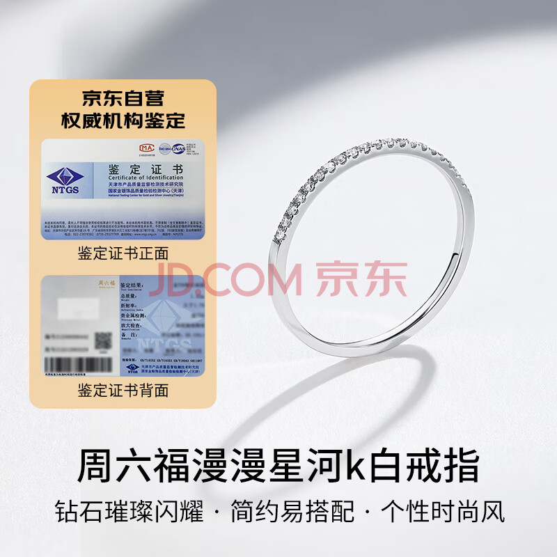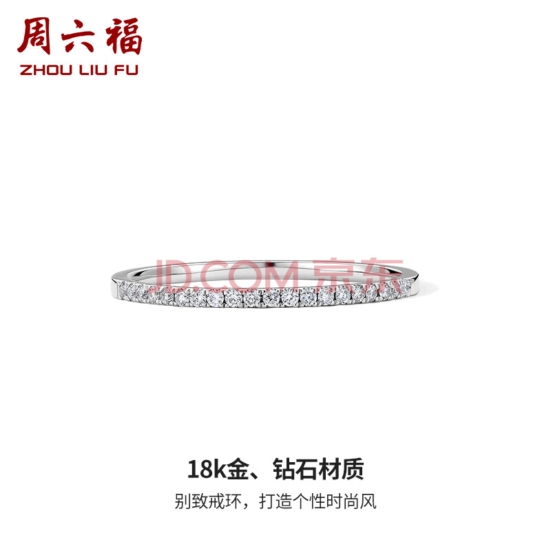 商品相册:周六福18k金钻戒女叠戴排钻钻石戒指 多色可选 白18k金 16号生日礼物第1张/共7