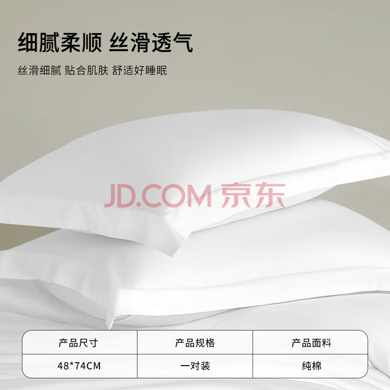 商品相册:源生活 轻奢长绒棉枕头套 纯棉枕芯套 白色一对装 48*74cm第