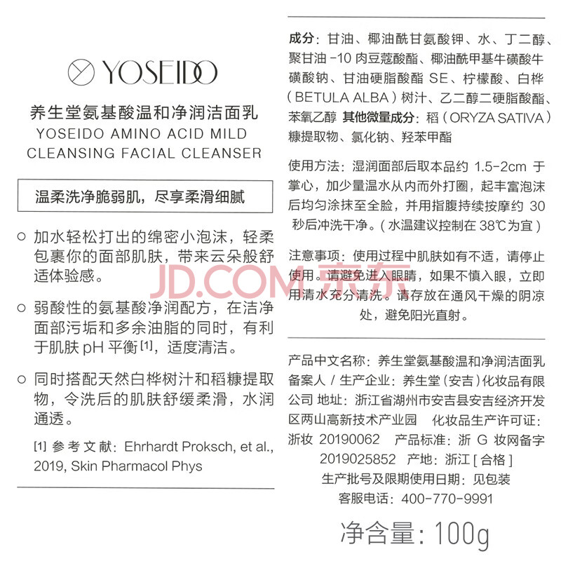 商品相册:养生堂氨基酸温和净润洁面乳100g 脆弱肌绵密泡沫洗面奶 礼物送男女友第