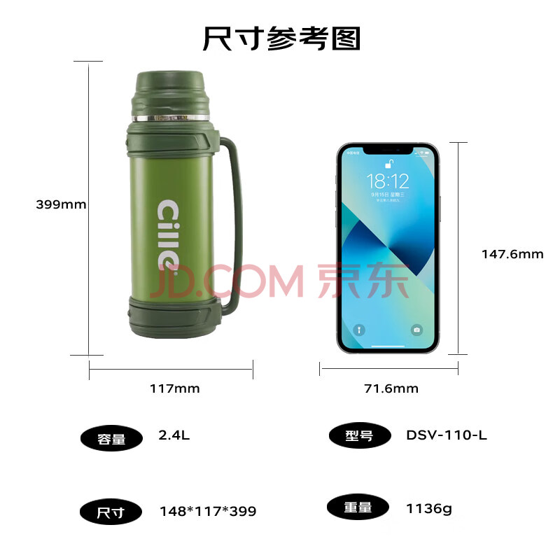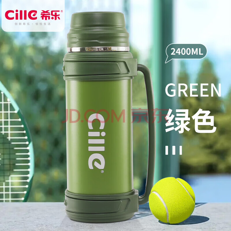 商品相册:希乐大容量保温旅行壶304不锈钢热水壶车载真空户外保温水瓶绿色2.4L第