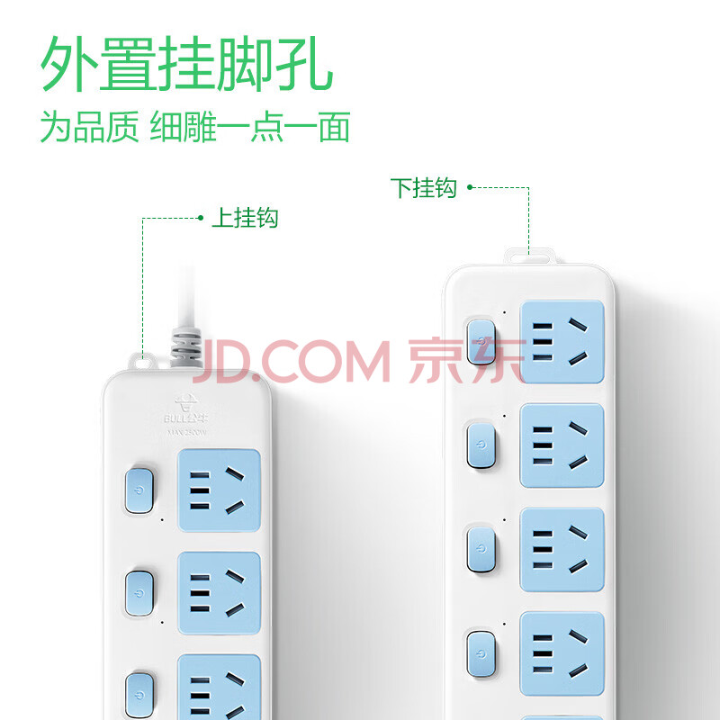 商品相册:公牛 GN-317 新国标插座/插排/插线板 6孔插排 6位分控 全长1.8米第