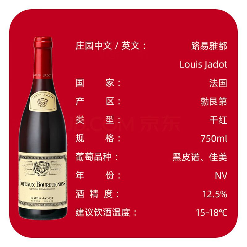 商品相册:路易亚都世家(Louis Jadot)勃艮第山丘黑皮诺干红葡萄酒 750ml*2 双支礼盒装 热门商品第