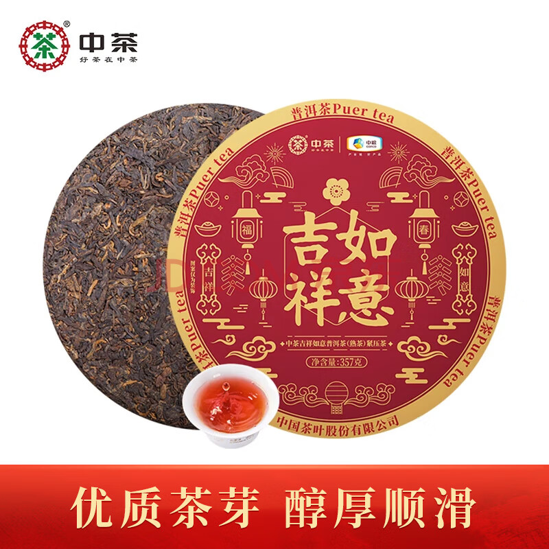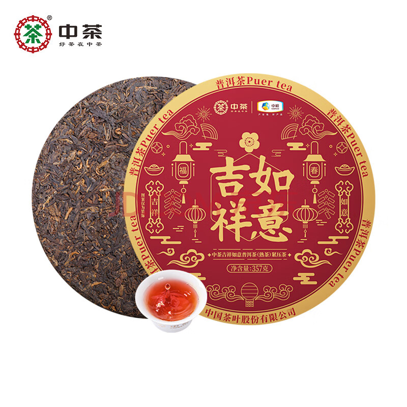 商品相册:中茶牌普洱茶熟茶吉祥如意茶饼熟普357g中粮集团茶叶第