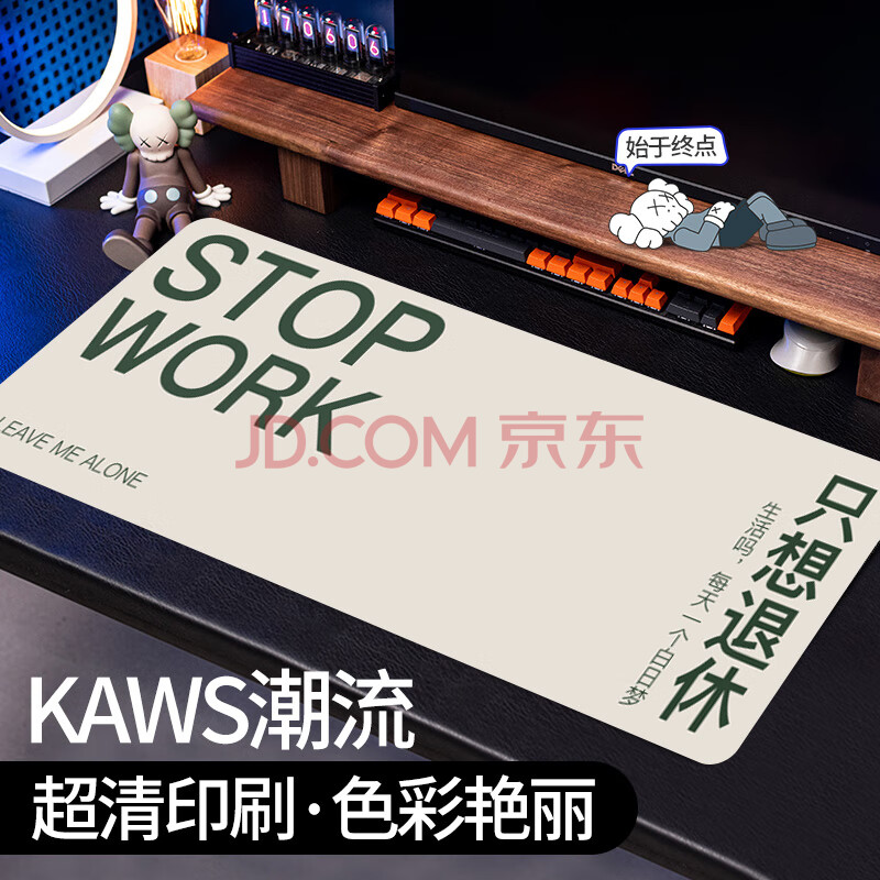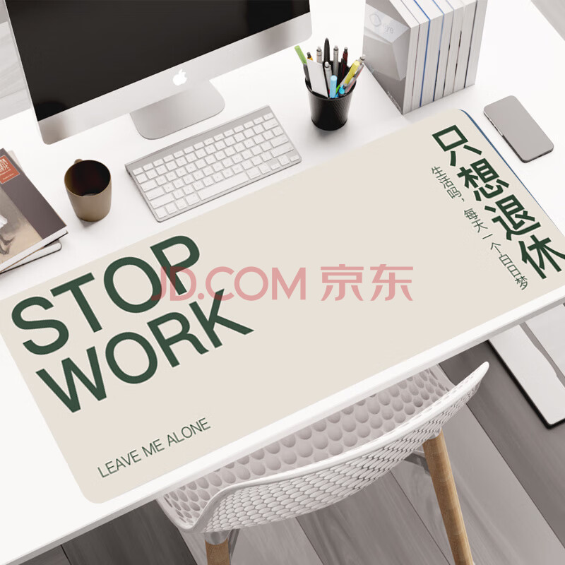 商品相册:灵蛇(LINGSHE)鼠标垫800*300*3超大加厚学生办公电脑桌垫 创意简约文字 精密锁边 P102 只想退休第