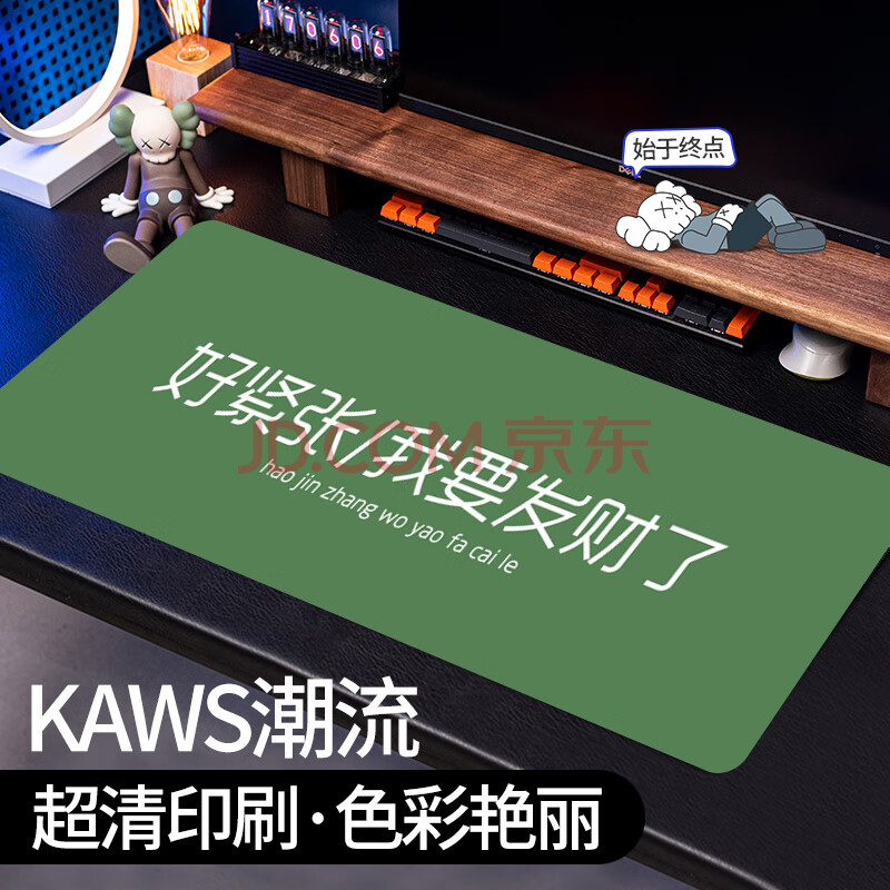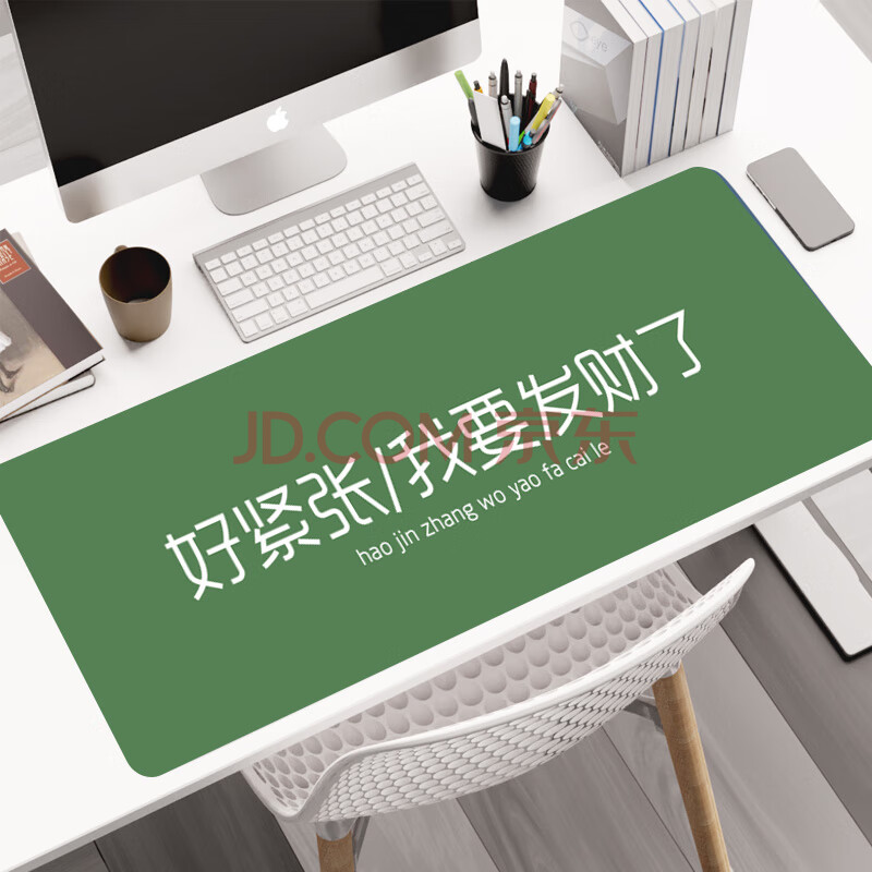 商品相册:灵蛇(LINGSHE)鼠标垫800*300*2超大加厚学生办公电脑桌垫 创意简约文字 精密锁边 P106 我要发财第