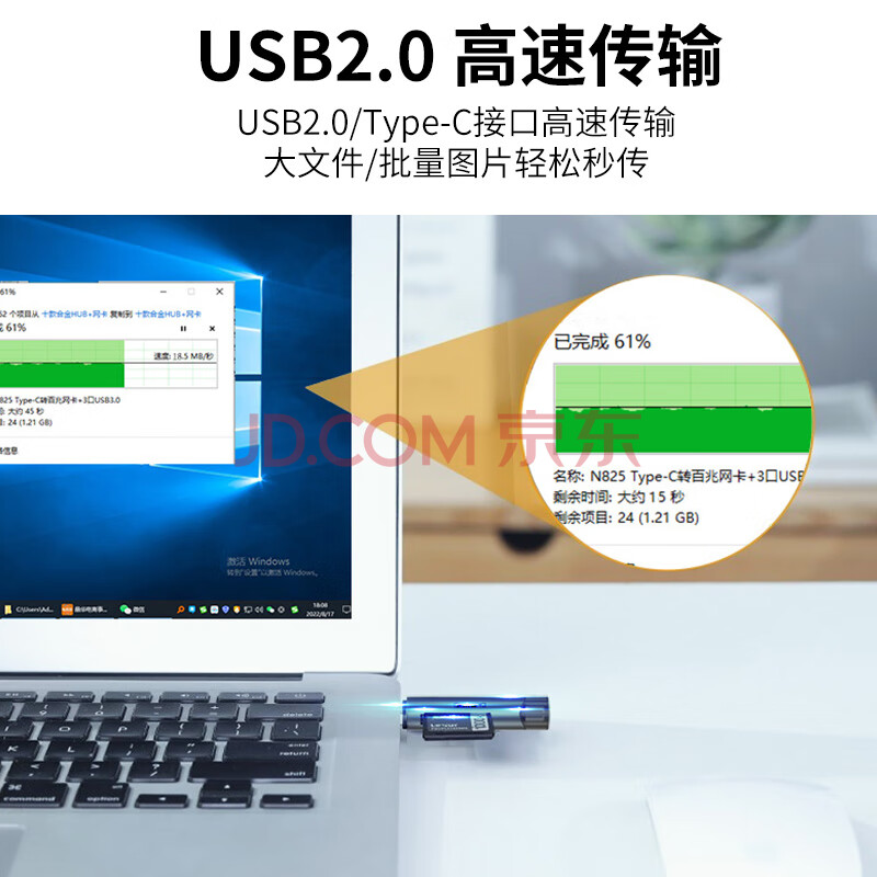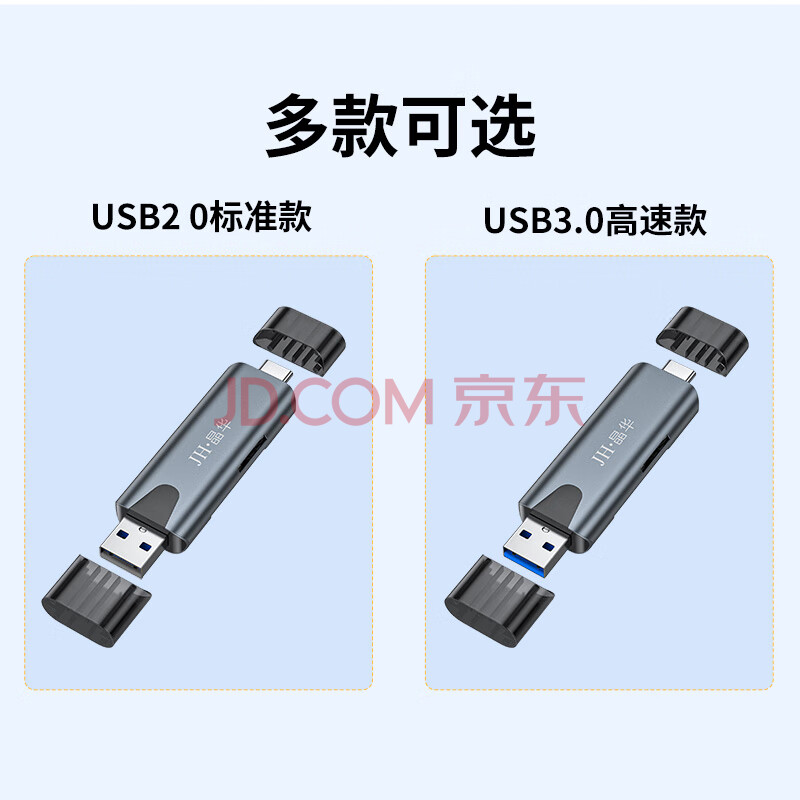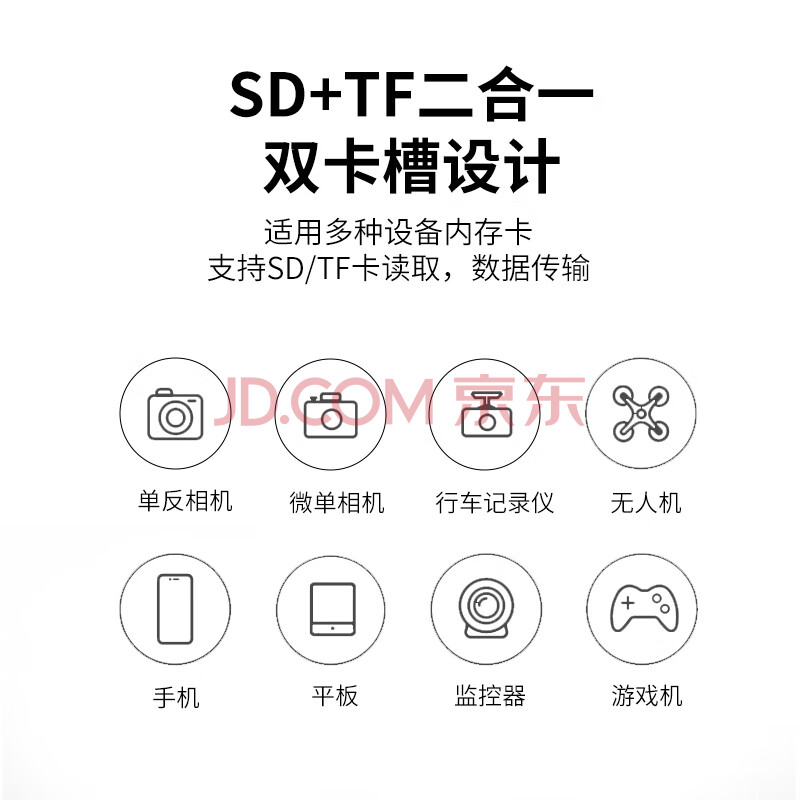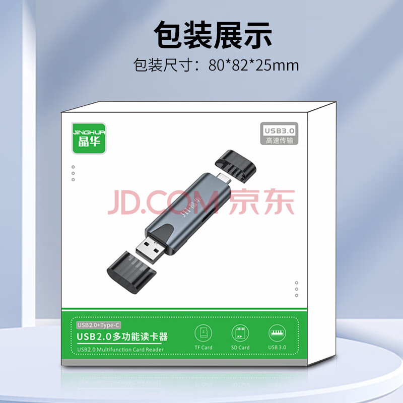 商品相册:晶华(JH)USB2.0高速读卡器 SD/TF二合一 type-c接口手机电脑笔记本内存卡单反相机行车记录仪存储卡 N458第