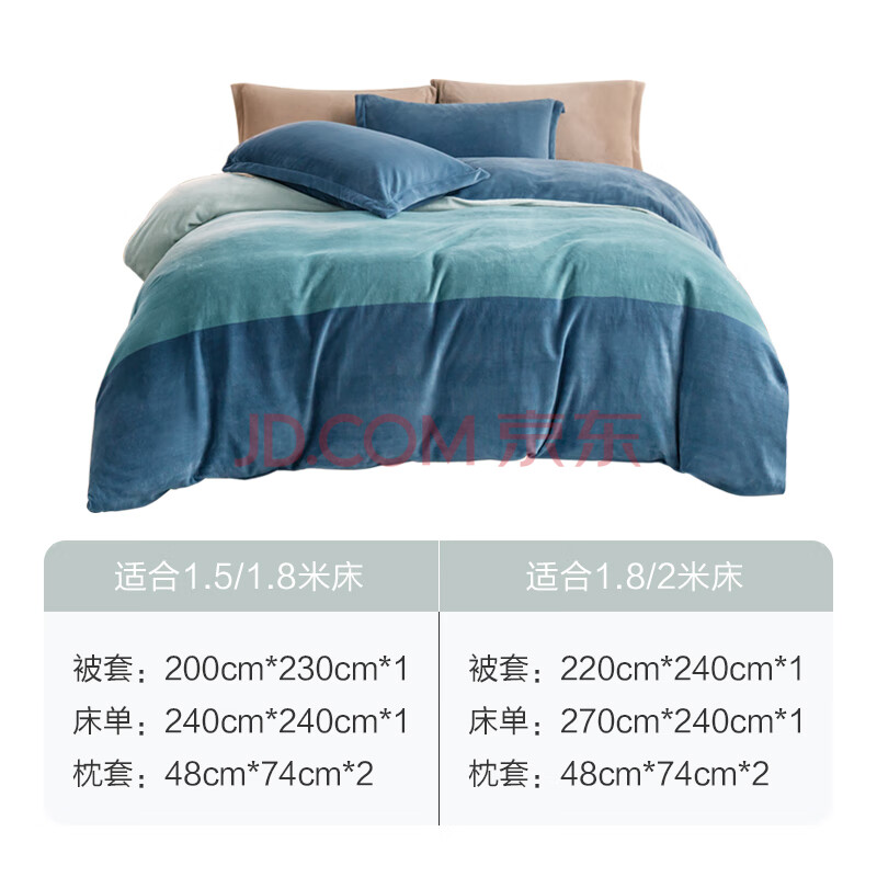 商品相册:京东京造 220g牛奶绒四件套 A类秋冬加厚高克重法兰绒保暖双人床单枕套被套 1.5米床 海澜第