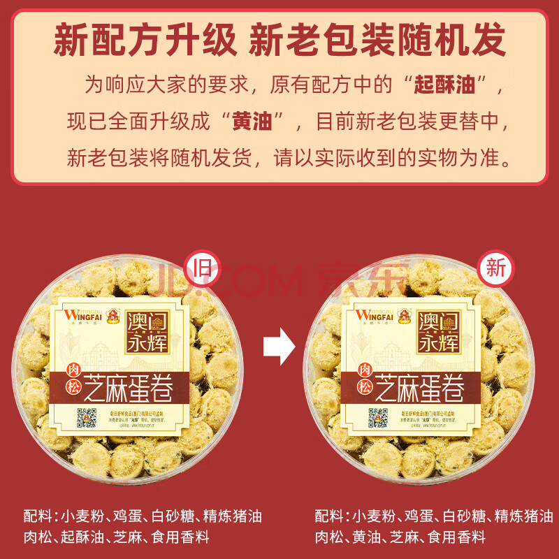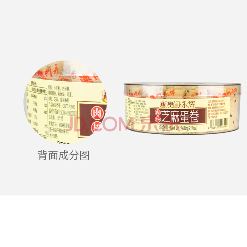 商品相册:永辉澳门 鸡蛋卷肉松芝麻味260g 休闲零食香脆饼干糕点澳门特产伴手礼第