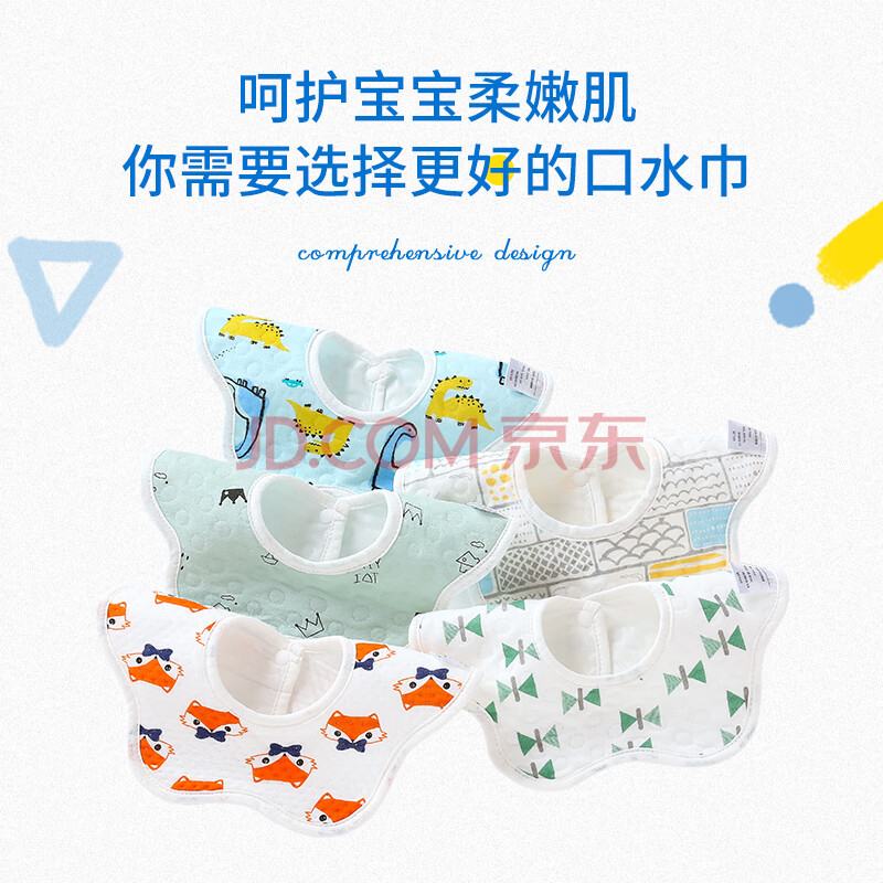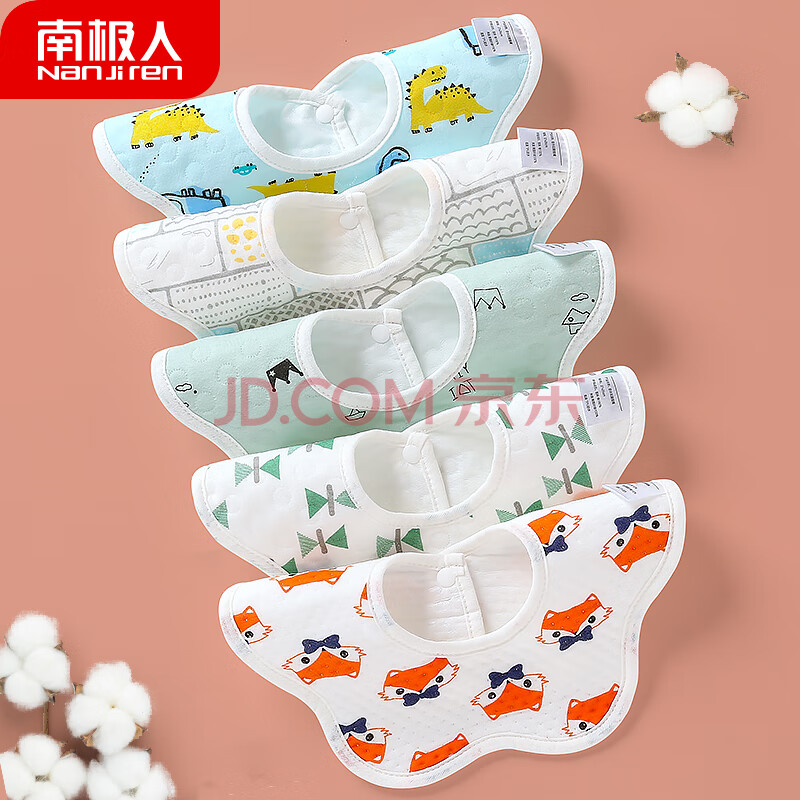 商品相册:南极人(Nanjiren)5条装婴儿口水巾新生儿360度旋转防水围嘴吐奶垫巾围兜儿童饭兜第